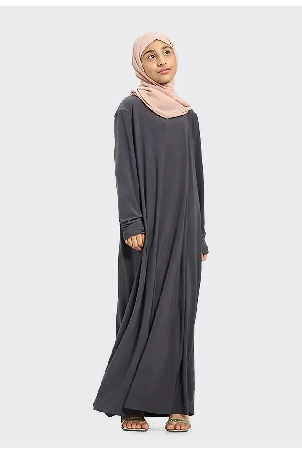 Plain Jersey Abaya Girls Grey